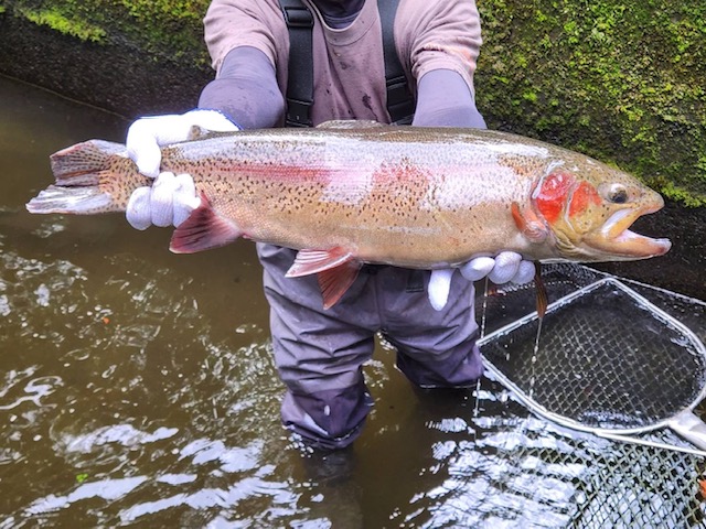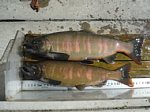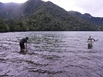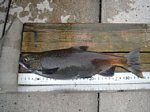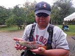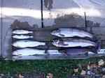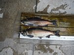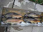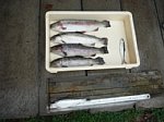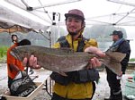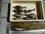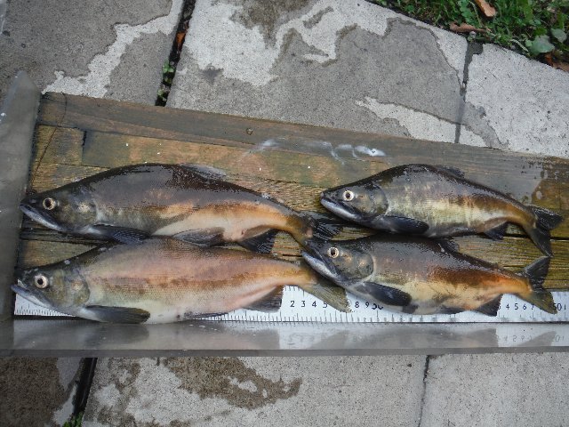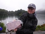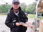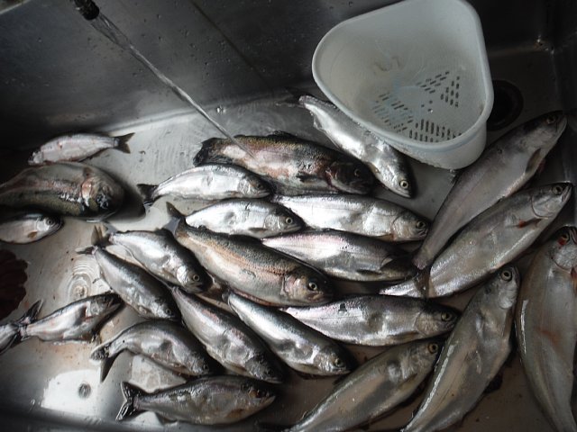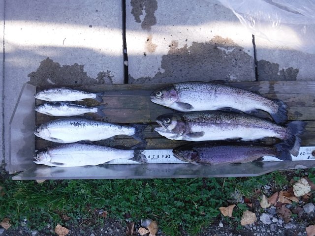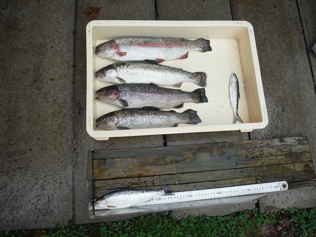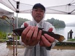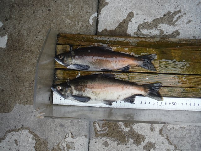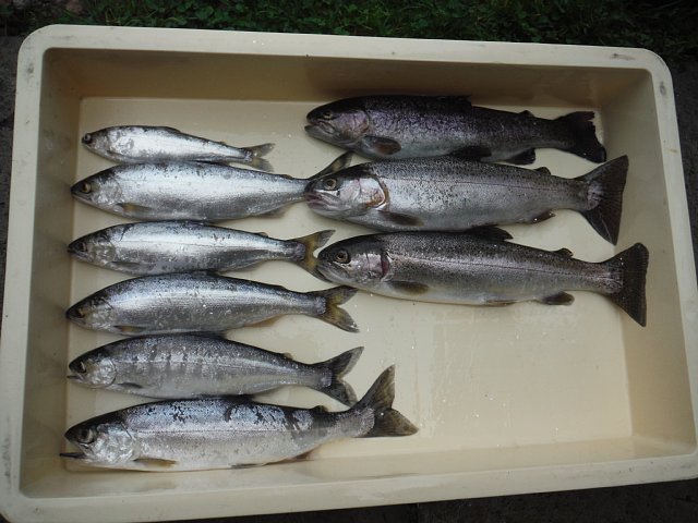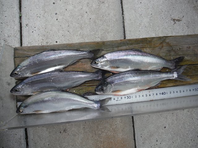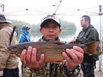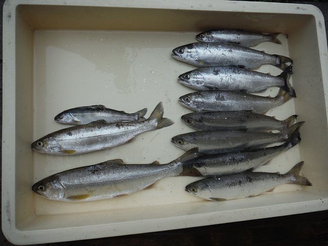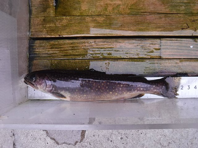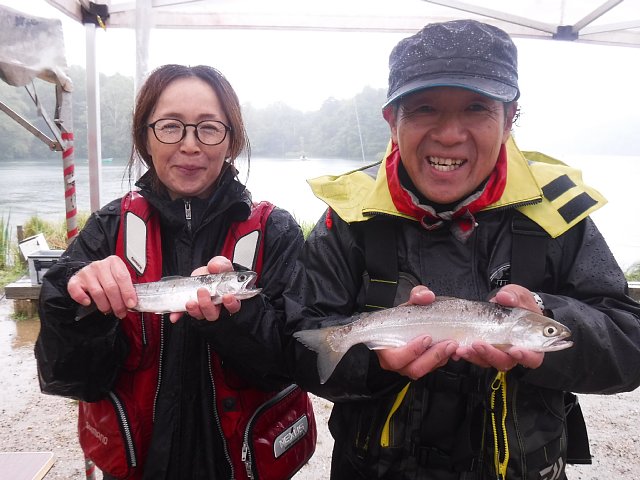気温 水温 今日は朝から雨がシトシト降り続け少し肌寒い天候となりました。 水温が下がってきたおかげで、最近は全体的に釣果よくなってきています。 レストハウス前の舟釣りではブドウ虫とイクラをエサにタナ3.5mで30.9cmのホンマス他6尾、ニジマス3尾の釣果がありました。 白樺ではブドウ虫をエサにタナ3mで42.5cmを含むニジマス8尾の釣果がありました。 岸釣りでは兎島北でブドウ虫をエサにタナ3.5mで29.2cm、27.6cmを含むヒメマス8尾、他ホンマス3尾の釣果がありました。事務所前ではオリーブ色の#8マラブーフライで32.3cmのカワマスが釣れました。他砂浜のブッコミ釣りで27.1cmのヒメマスと23.4cmのホンマスが釣れていました。 |