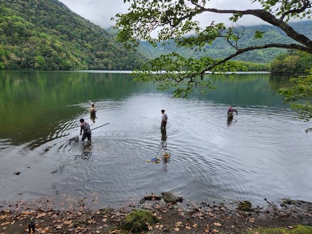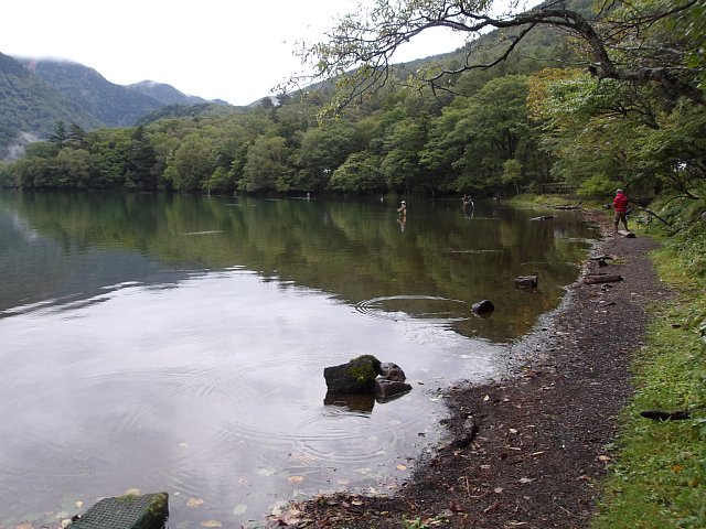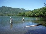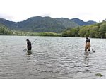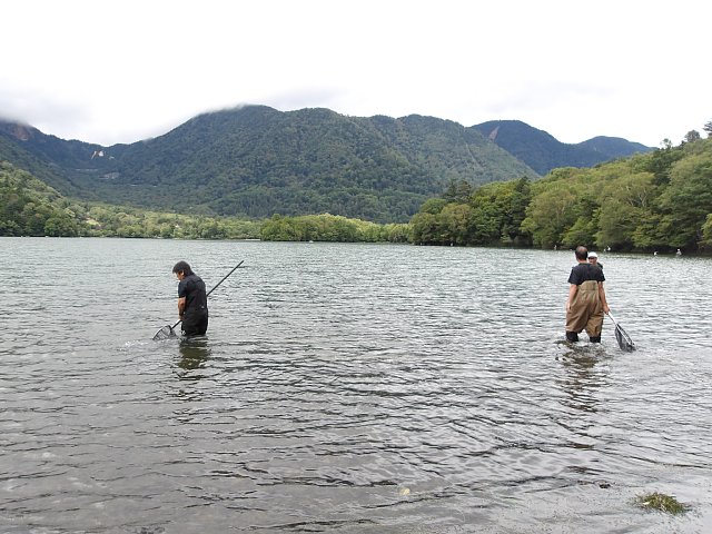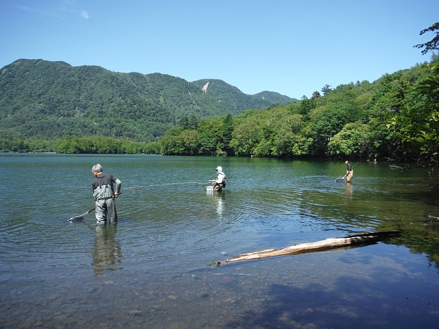 気温 今朝は冷え込みが強く、湖面に気嵐がたちました。 白根沢の流れ込みでエサ釣りをされた方は、ブドウ虫をエサにタナ3mで36.6cmのヒメマスを釣り上げました。 事務所前では25.7cmのホンマスと46.0cmのニジマスがフライで釣れました。 |