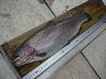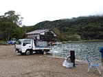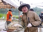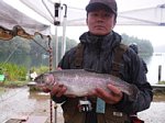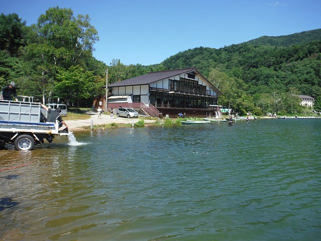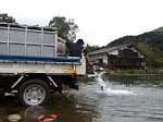 気温 水温 明日20日の釣り大会に向けて、大型ニジマスの放流を行いました。今日は140kg、明日の釣り大会当日には200kgの放流を行います。超特大のニジマスも入ってますので、明日の釣り大会は奮ってご参加ください。 |