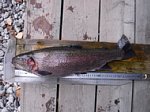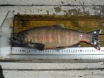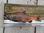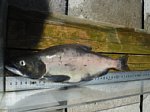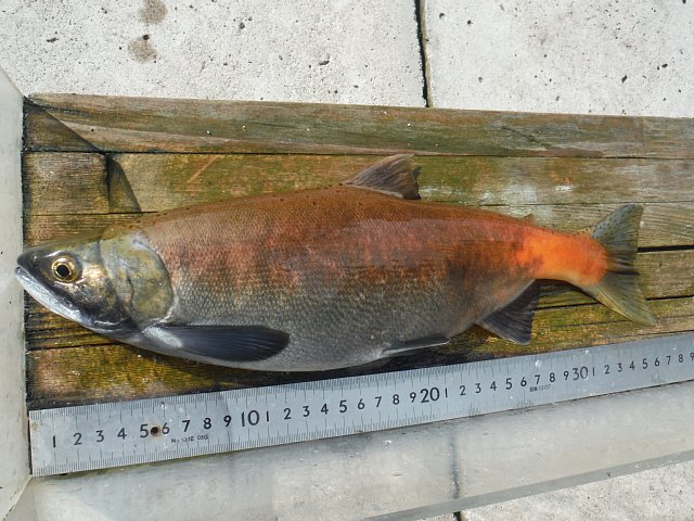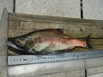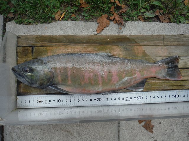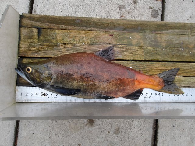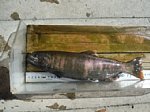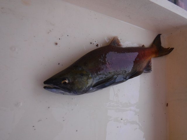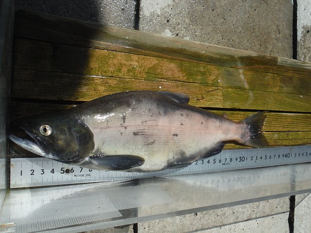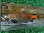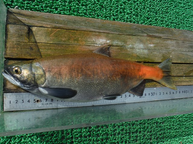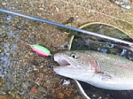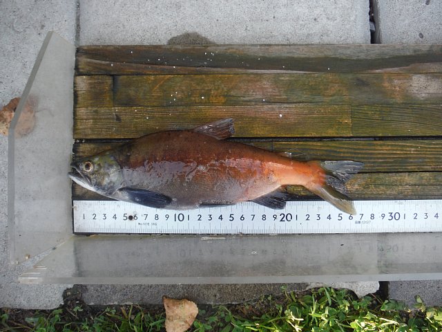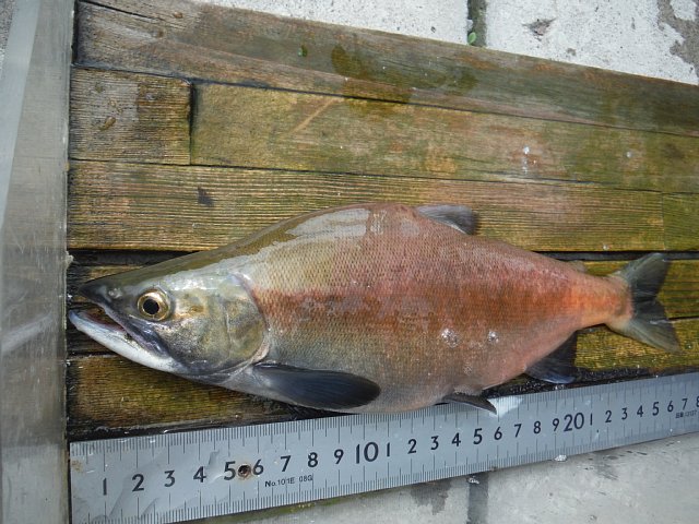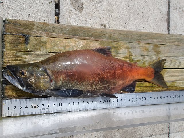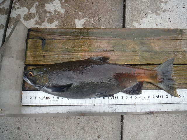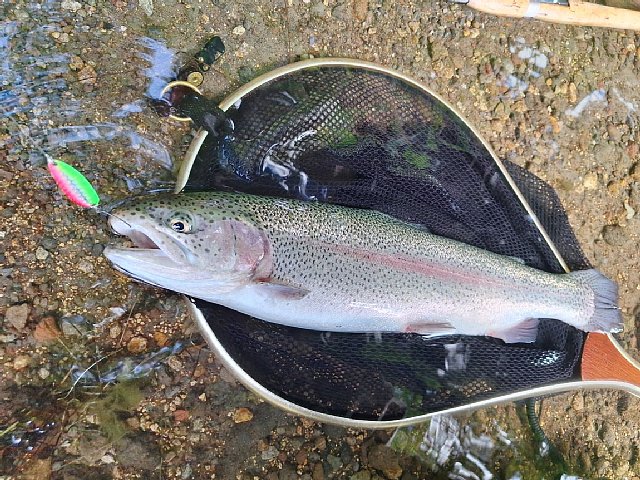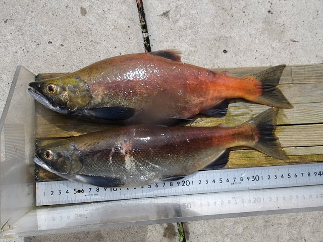 気温 水温 今日も婚姻色ヒメマスが釣れていました。事務所でオレンジ色のプルーラ3.8gで年間トラウトランキング暫定1位となる37.2cmのヒメマスが釣れました。 事務所前では他の方もヒメマスを釣りました。ライムグリーン色のボトルノックスイマー3.5gで35.6cmのヒメマス、他にヒメマス2尾も釣れたそうです。他の方もジグを使って28.0cmのヒメマスが釣れています。 婚姻色のヒメマスはボトム狙いでルアーは縦の動きをさせる方が良いようです。 |