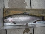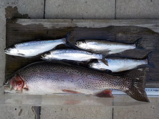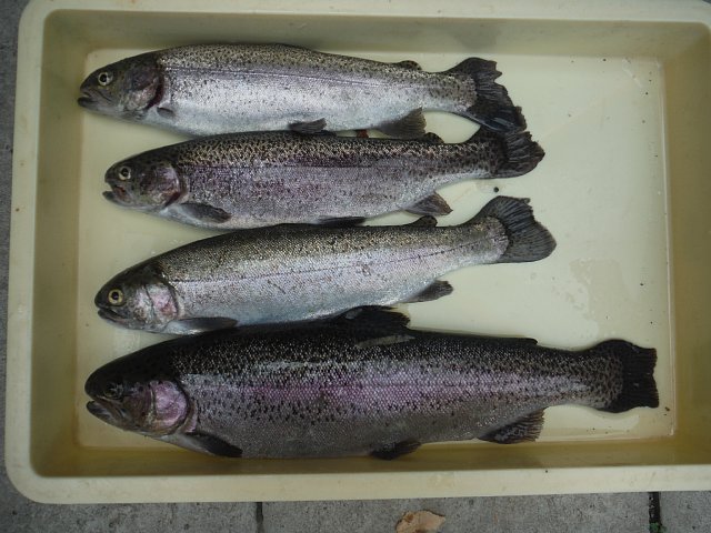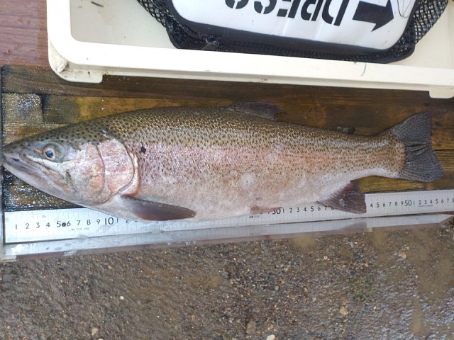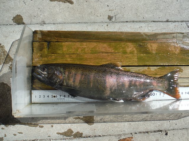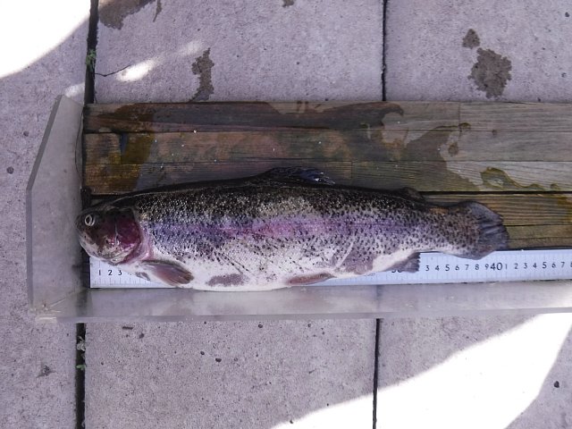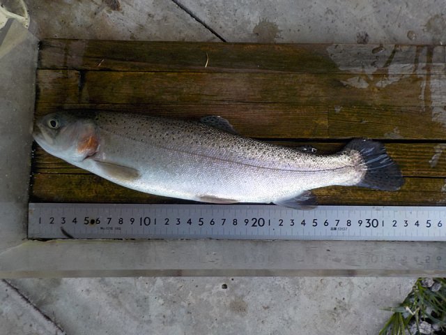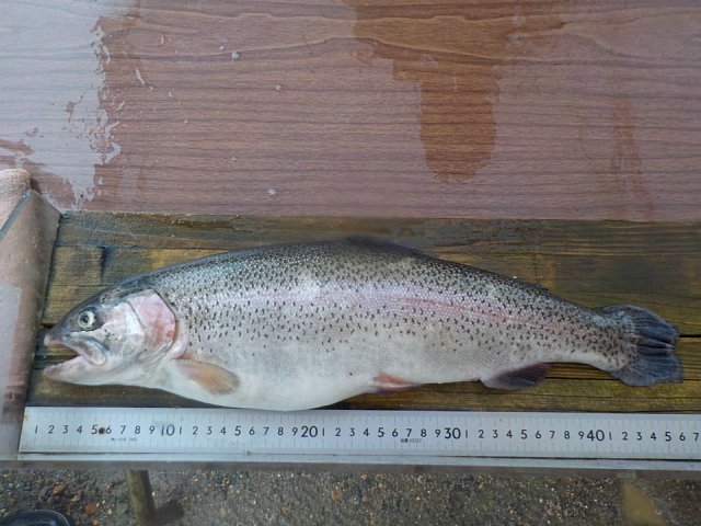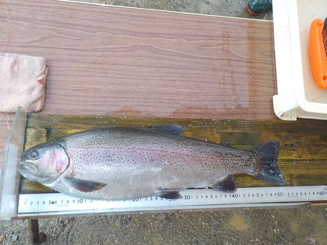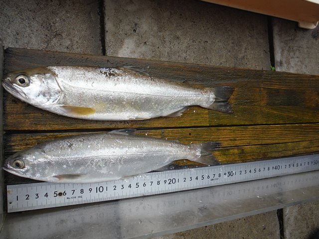 気温 水温 先日ヒメマスの暫定1位が釣れましたが、今日もそれを越える37.7cmの大物ヒメマスがスミスのパニッシュで釣れました。他に10尾も釣れたそうです。 ひのきではブドウ虫をエサにタナ5mで36.7cmのヒメマス、他ニジマス6尾の釣果でした。 一本杭ではブドウ虫をエサにタナ6mで27.7cmの銀色のヒメマスが釣れました。 事務所前ではユスリカのフライで55.2cmのニジマス、47.8cmのニジマス、35.8cmのカワマスが釣れました。 |