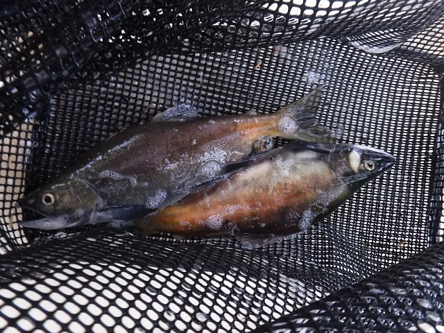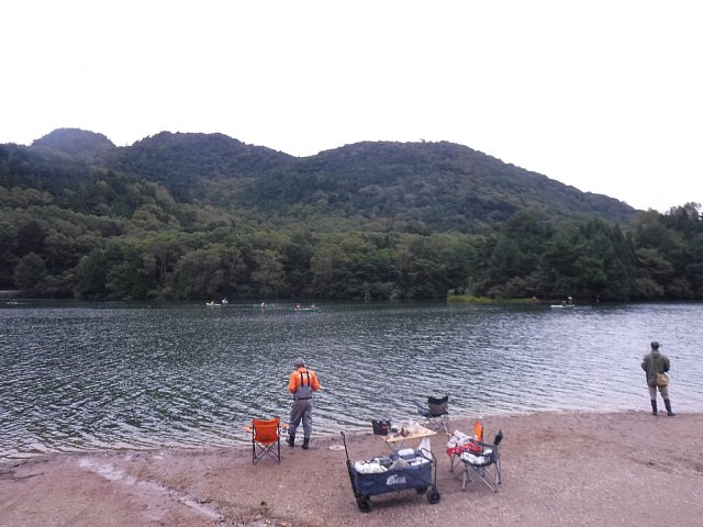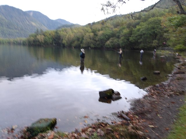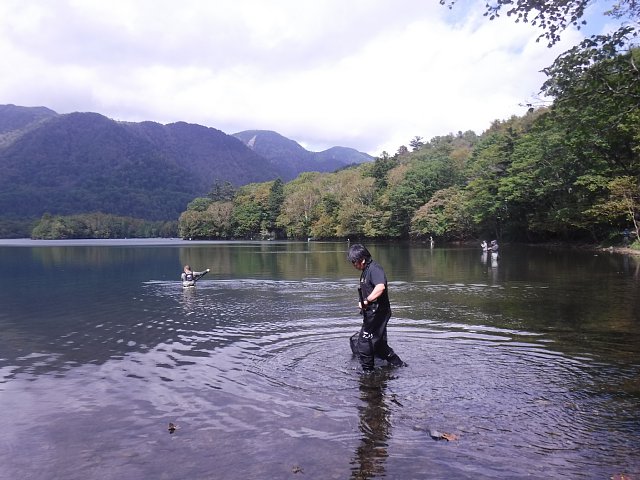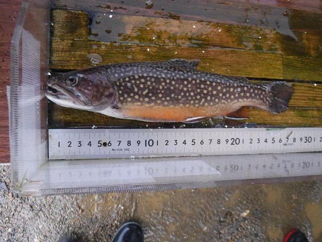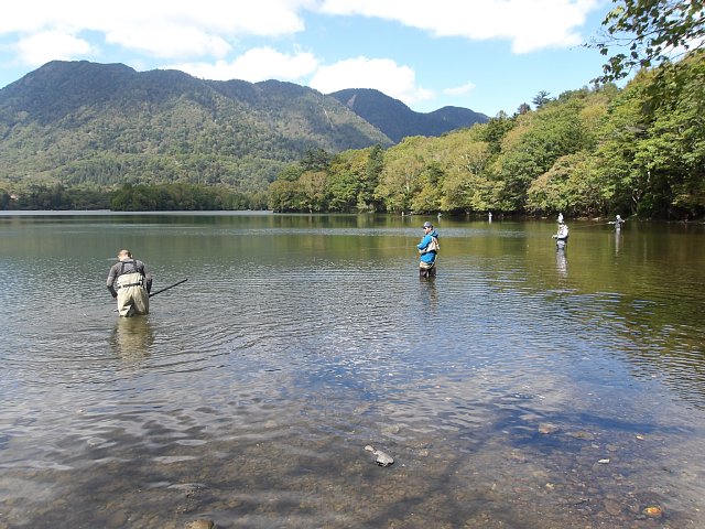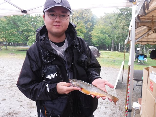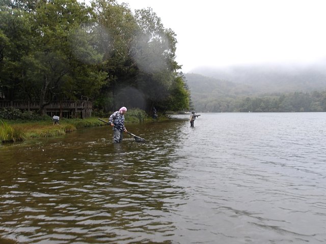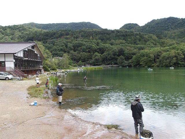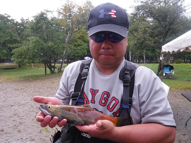 気温 水温 午前中は雨が降りましたが、午後は晴れ間が見られ、秋らしい天気となりました。 滝上に婚姻色のヒメマスが寄ってきていて、エデンのピンク/シルバーで27.4cmのヒメマス2尾釣れていました。底付近で釣れたとのことです。 レストハウス前ではブドウ虫エサでホンマス24.3cm、カワマス23.2cm他ニジマス4尾の釣果がありました。 一本杭では銀色のヒメマスとニジマスがたくさ釣れていました。タナは5mで岸よりのほうが釣果が良いとのことです。一本杭では水温が下がって、釣果が良くなってきているようです。 |