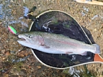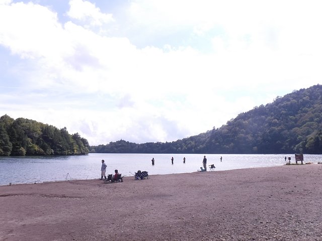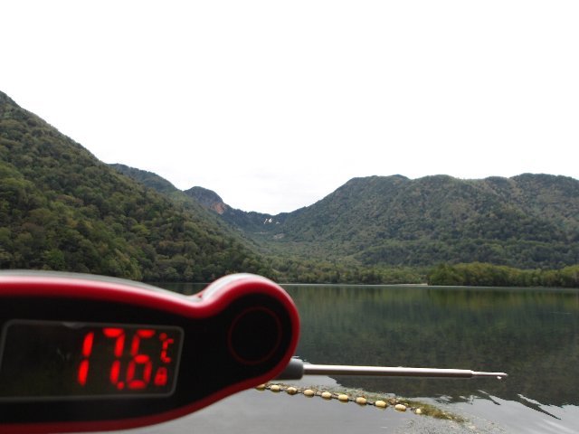 気温 昨日の冷え込みで秋の気配が一段と深まった湯ノ湖です。 今日はルアーで大型ニジマスが釣れていました。砂浜ではスミスピュア5g赤/金で58.2cmのニジマスが釣れ、事務所前ではベスパ3.2gレモンイエロー(蓄光)で49.7cmのニジマスが釣れました。 |