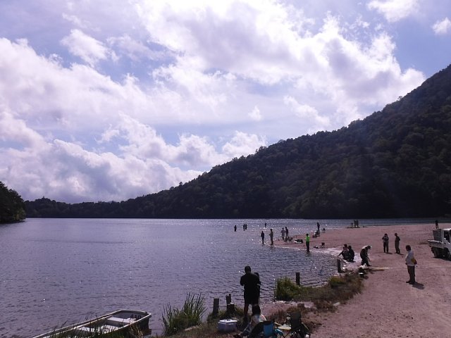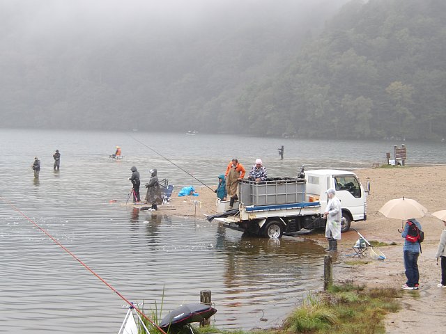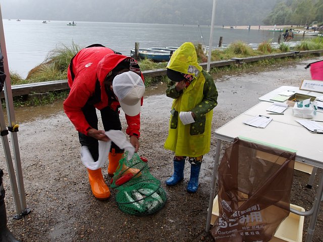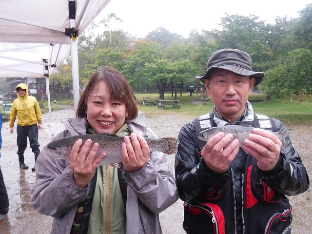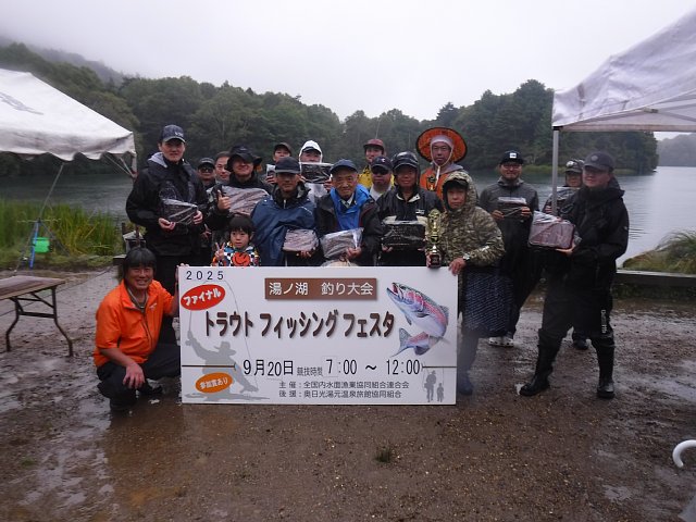 気温 今季最後の釣り大会「ファイナルトラウトフィッシングフェスタ」を行いました。一日中雨が降り続きましたが、120名を超える釣魚者が集まり、最後の釣り大会を盛り上げました。 ニジマスの部は57.4cmの大型ニジマスを釣り上げた群馬県からお越しの峯川康平さんが受賞しました。カワマスの部は39.7cmの大型カワマスをフライで釣り上げた茨城県からお越しの柳沢昭さんでした。ヒメマスの部は35.7cmの婚姻色の出たオスのヒメマスをルアーで釣り上げた富山県からお越しの七瀬 徹さんでした。ホンマスの部は36.2cmの良型を釣り上げた群馬県からお越しの堀川晃司さんでした。小学生の部はエントリーが1名しか無く、千葉県らお越しの内記 福さんが優勝しました。 表彰式終了後にはフォレスト様とリバーオールド様にルアーを寄贈いただき、抽選会を行いました。たくさんのルアーを寄贈いただいたフォレスト様とリバーオールド様に感謝いたします。 9月19日と20日でニジマスとカワマス合計340kgの放流を行いました。残り期間が僅かとなった湯ノ湖の釣ですが、魚影が濃い状況で水温も下がり魚の活性も上がっていますので、今年最後の釣りをお楽しみください。 |