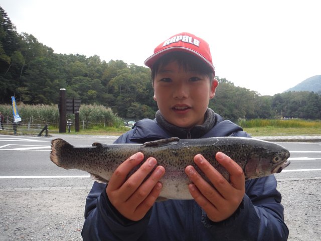 気温 水温 今季最後の日曜日は午前中晴れていましたが、午後から曇り空となりました。午前中は風が吹いて少し釣りづらかったようです。 事務所前では昨日に引き続き婚姻色のホンマスとヒメマスが釣れていました。 兎島の岸釣りではベス緑金のボトム狙いで51.6cmのニジマスと47.5cmのニジマスが釣れました。 滝上ではMIU3.5g赤金の早巻きで25.0cmのカワマスが釣れました。 昨日と今日は今年最後の釣りを楽しんだ方がたくさんいらっしゃいました。残り2日となった湯ノ湖の釣りをお楽しみください。